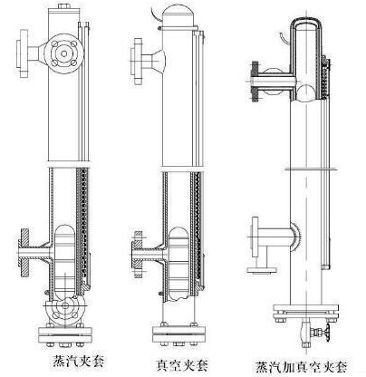 一般夾套保溫都是把保溫裝置按在液位計主體管道的周圍,分為兩種方式:一種是電伴熱(也叫電加熱)裝置,通過纏繞在夾套磁翻板液位計主管道上的電阻絲對管道進(jìn)行加熱使管道內(nèi)的液體處在冰點以上,保證罐體內(nèi)的液體不會因為溫度過低而結(jié)冰;另一種是蒸汽夾套保溫,把一空夾層固定在主體管道的外圍,對空夾層里面輸入溫度高的蒸汽,利用高溫蒸汽對主體管道內(nèi)部的介質(zhì)進(jìn)行熱力傳遞,達(dá)到保溫作用。