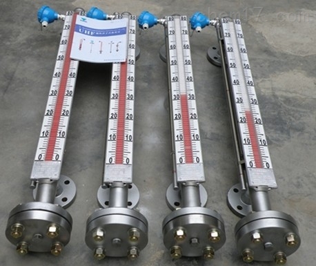 3、磁翻板液位計(jì)安裝完畢后,需要用磁鋼進(jìn)行校正對翻柱導(dǎo)引一次使零位以下顯示紅色,零位以上顯示白色。