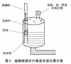 耐高溫磁翻板液位計安裝位置的選擇應(yīng)根據(jù)該點的液位是否能真實反應(yīng)酸槽實際液位。酸槽上耐高溫磁翻板液位計垂直安裝位置的選擇如圖2所示。
