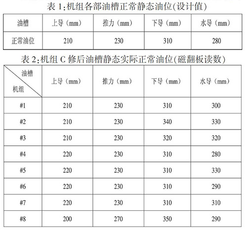 2)機組檢修后嚴格按照設(shè)計圖紙要求油位進行加油,偏差控制在±10mm以內(nèi);