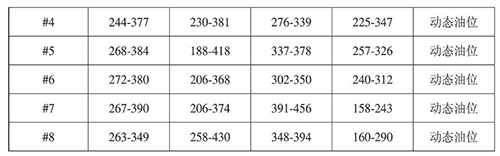 通過表7,按照*大波幅=動態(tài)*大值-靜態(tài)*小值、*小波幅=動態(tài)*小值-靜態(tài)*大值可以得出油位*大波幅和*小波幅,詳見表8: