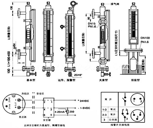 傳感器的作用是采樣液位高低位置并轉(zhuǎn)換成標準信號傳送至控制室,傳感器實際由干簧管和電阻組成。當浮子內(nèi)磁鋼位置變化后,磁場通過器壁帶動傳感器內(nèi)干簧管觸點吸合。干簧管吸合的位置決定回路的阻抗大小,干簧管的通常位置為10mm1組。回路的大小正好與液位的高低成正比,這樣*后由置于傳感器外殼內(nèi)的變送器將電阻信號轉(zhuǎn)換成標準的電流信號,送至控制室。具體結(jié)構(gòu)、原理圖見圖2。
