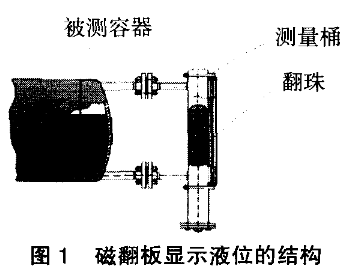 磁翻板是顯示液位的部分(見圖1)。磁翻板內(nèi)的翻珠內(nèi)裝有柱狀的磁鋼,而所有的翻珠均勻布置于鋁制的卡槽內(nèi),當液位計中液位上升時,由于磁鋼受浮子內(nèi)磁場的影響帶動翻珠由白色翻轉(zhuǎn)為紅色;反之液位下降時,翻珠由紅色翻轉(zhuǎn)為白色。這樣磁翻板在無需任何電源的情況下就可以反應出容器內(nèi)液位的變化。
