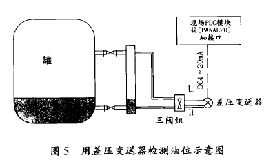 對貯罐油位改用差壓法檢測后,測量值滯后性小(考慮到氣閥開/cjj時的差壓波動影響,可適當增加阻尼,damp值取2~4s)。智能差壓變送器準確度高(0.5級,氯酸液位計1.5級),穩(wěn)定性好,調整靈活(用實際工作油進行標定,不需要專門測定油的密度p),安裝也比較方便,可保留氯酸液位計。計算機編程部分工作量也不大,實施該項目費用在7 000元以內。此方法可用于其他水箱和油箱等檢測、控制方式的改進。