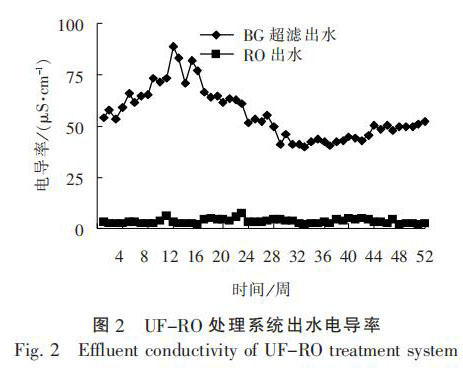 采用 UF-RO 工藝處理磁翻板液位計晶背研磨廢水和反洗廢水, 出水 TOC 質(zhì)量濃度低于 1 mg / L, 濁度低于 0.1 mg / L, SiO2 質(zhì) 量 濃 度 低 于 1 mg / L, 完 全達(dá)到設(shè)計要求并回用于超純水預(yù)處理系統(tǒng)。 本工程實(shí)施后, 年回收并回用水量達(dá)到 154 260 m3, 有效降低了自來水消耗量。 同時, 該系統(tǒng)運(yùn)行維護(hù)簡單, 處理成本低, 取得了良好的節(jié)水效果和經(jīng)濟(jì)效益。