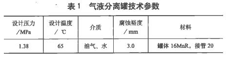 某煉化裝置1臺立式氣液分離罐(規(guī)格DN2400X20,以下簡稱分離罐),技術參數(shù)見表1。在今年12月運行中液位計接管(425x3mm)的外伸部位發(fā)生泄漏,進行停工搶修。