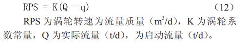①吸汽量。計(jì)算射孔層位吸汽量,可以通過六參數(shù)儲(chǔ)罐液位計(jì)的渦輪流量計(jì)實(shí)現(xiàn)。忽略低流速時(shí)渦輪的非線性響應(yīng)及密度對(duì)渦輪轉(zhuǎn)速的影響,則渦輪轉(zhuǎn)速 RPS 與流速成正比 :