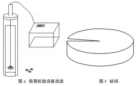 因?yàn)檎裣沂絺鞲衅鳎?重要的核心就是弦,從基本原理入手,采用加 載砝碼的方法進(jìn)行率定,每個(gè)砝碼固定重量為 300g,*多添加砝碼個(gè)數(shù) 為 6 個(gè),總量可達(dá) 1800g。砝碼較多時(shí),需要很長(zhǎng)時(shí)間穩(wěn)定。為了提高系統(tǒng) 穩(wěn)定性,減少系統(tǒng)穩(wěn)定時(shí)間,因此對(duì)簡(jiǎn)易校驗(yàn)裝置進(jìn)行改進(jìn),如圖 4、圖 5所示。