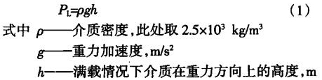 (1)磷酸液位計(jì)主要用來(lái)儲(chǔ)存配置好的鉆井液,在單罐滿載的情況下,內(nèi)部介質(zhì)對(duì)罐體內(nèi)壁存在液柱靜壓力作用。液柱靜壓采用式(1)計(jì)算。
