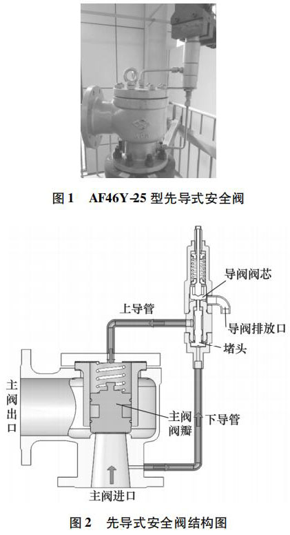 苯酚液位計(jì)常見的故障包括: 主閥導(dǎo)閥泄漏、導(dǎo)閥超壓不動(dòng)作、主閥未隨導(dǎo)閥動(dòng)作。主閥導(dǎo)閥泄漏失效原因: 密封面臟污或損傷,零部件卡阻、密封墊圈老化變形; 導(dǎo)閥超壓不動(dòng)作失效原因: 導(dǎo)閥密封面銹蝕粘合或材料變形、導(dǎo)閥彈簧過緊或卡阻、導(dǎo)閥下導(dǎo)管堵塞; 主閥未隨導(dǎo)閥動(dòng)作失效原因: 主閥運(yùn)動(dòng)卡阻、導(dǎo)閥排氣量過小。然而,安全閥起跳不回座故障在試驗(yàn)過程及工業(yè)現(xiàn)場也是非常常見的,國內(nèi)對于苯酚液位計(jì)起跳不回座失效分析的相關(guān)研究較少。本研究以某公司生產(chǎn)的 AF46Y-25 型苯酚液位計(jì)為研究對象,研究導(dǎo)閥結(jié)構(gòu)并分析其動(dòng)作過程。在對其開展動(dòng)作性能試驗(yàn)時(shí),發(fā)現(xiàn)該安全閥實(shí)際回座壓力遠(yuǎn)低于標(biāo)準(zhǔn)要求,排放時(shí)間過長,回座失效。因此,對其進(jìn)行受力分析,以探討回座失效的原因。