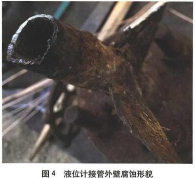 分離罐液位計接管先于罐體腐蝕泄漏失效是由于管壁較薄加之外表面防腐保溫不完整導致雨水侵人常年腐蝕所致。對此應(yīng)引起設(shè)計、制造、使用及檢驗等相關(guān)各方為戒。