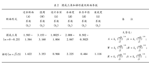 (3)水力非常好的斷面設(shè)計(jì)參數(shù)確定