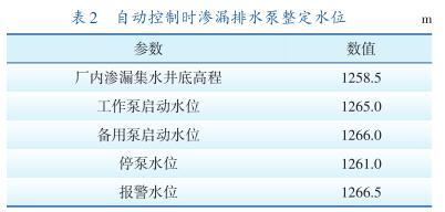呼蓄電站廠房排水系統(tǒng)包括地下廠房滲漏排水系統(tǒng)、機組檢修排水系統(tǒng)。地下廠房滲漏排水系統(tǒng)設(shè)有1個滲漏集水井,有效容積364 m 3 ,設(shè)5臺滲漏排水泵,3運2備,系統(tǒng)*大滲漏總排水量為2250m 3 /h。滲漏排水泵正常運行時由廠內(nèi)滲漏排水控制盤PLC或監(jiān)控系統(tǒng)自動控制啟停,也可就地通過每臺泵的啟動柜手動啟停。自動控制時整定水位見表2。廠房排水系統(tǒng)設(shè)備主要參數(shù)見表3。
