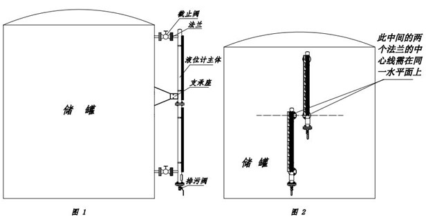 (2)磁翻板液位計與容器之間應(yīng)裝有閥門,以便清洗和檢修時切斷物料;