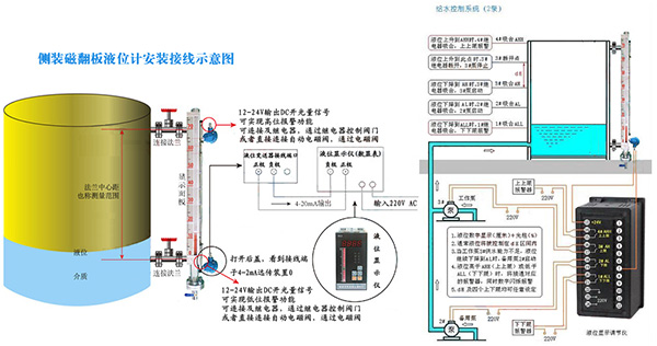 帶遠傳磁翻板液位計一般是兩線制,4~20MA信號。其中一種接線方法為:帶遠傳磁翻板液位計正*接儀表24V輸出端,帶遠傳磁翻板液位計負*接儀表4~20MA輸入端的正*,然后儀表的4~20MA輸入端的負*與儀表的24V輸出端的負*短接起來。以上接法可以利用儀表的24V輸出做帶遠傳磁翻板液位計電源。