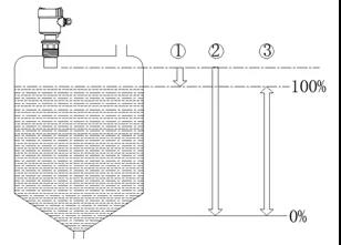 2、換能器發(fā)射面到*高液位之間的距離應大于液位計盲區(qū)(安裝高度>*高液位+盲區(qū))如圖1所示: