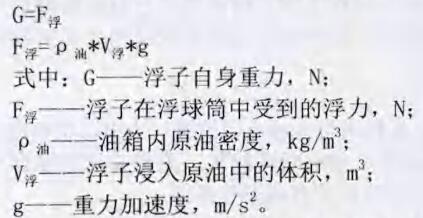 通過上式可以看出,浮球桶進(jìn)入液體體積約為1/2左右,說(shuō)明其對(duì)于密度為0.92g/c3的中到重質(zhì)油測(cè)量液位非常合適,避免了人工測(cè)量產(chǎn)生的人為誤差,更對(duì)于測(cè)量人員靠近罐口可能產(chǎn)生的危險(xiǎn)進(jìn)行了有效的規(guī)避。