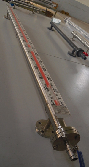 根據(jù)浮力原理,浮子在測量管內(nèi)隨液位的升降而上、下移動,浮子內(nèi)的永久磁鋼通過耦合作用,驅(qū)動紅、白色翻柱翻轉(zhuǎn)180°,液位上升時翻柱由白色轉(zhuǎn)為紅色,下降時由紅色轉(zhuǎn)為白色,從而實現(xiàn)液位指示。