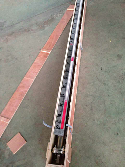 根據(jù)浮力原理,浮子在測(cè)量管內(nèi)隨液位的升降而上、下移動(dòng),浮子內(nèi)的永久磁鋼通過耦合作用,驅(qū)動(dòng)紅、白色翻柱翻轉(zhuǎn)180°,液位上升時(shí)翻柱由白色轉(zhuǎn)為紅色,下降時(shí)由紅色轉(zhuǎn)為白色,從而實(shí)現(xiàn)液位指示。